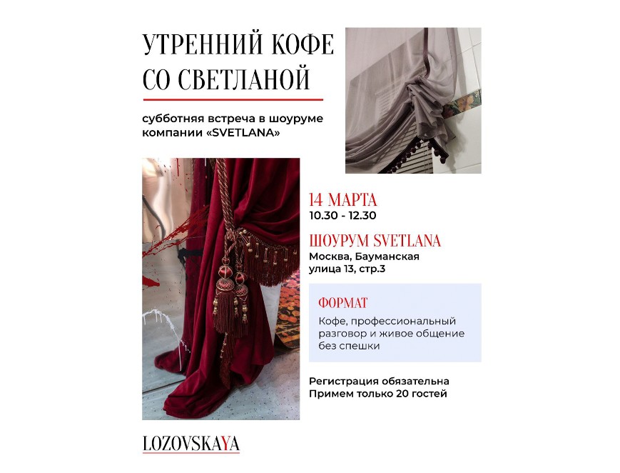 Субботняя встреча в шоуруме по адресу Москва, ул. Бауманская 13, стр.3